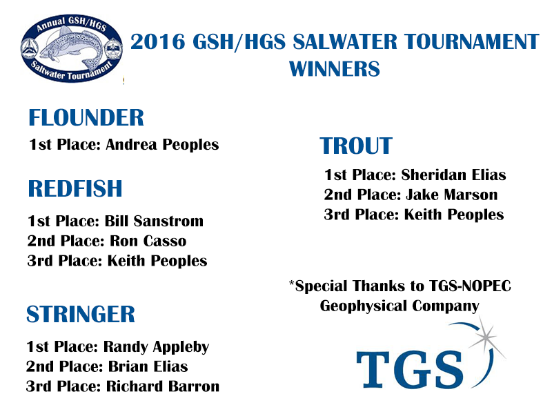 Congratulations to the winners for the GSH/HGS Saltwater Tournament!